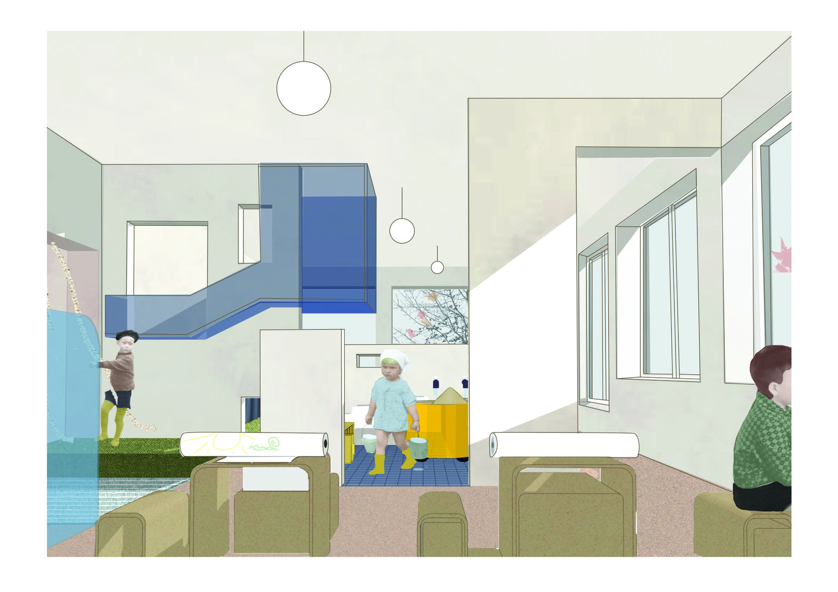 Большое светлое игровое пространство было получено в результате объединения нескольких помещений