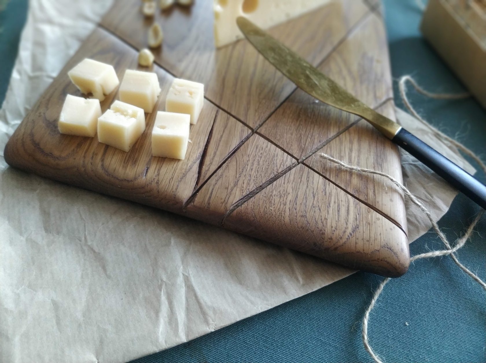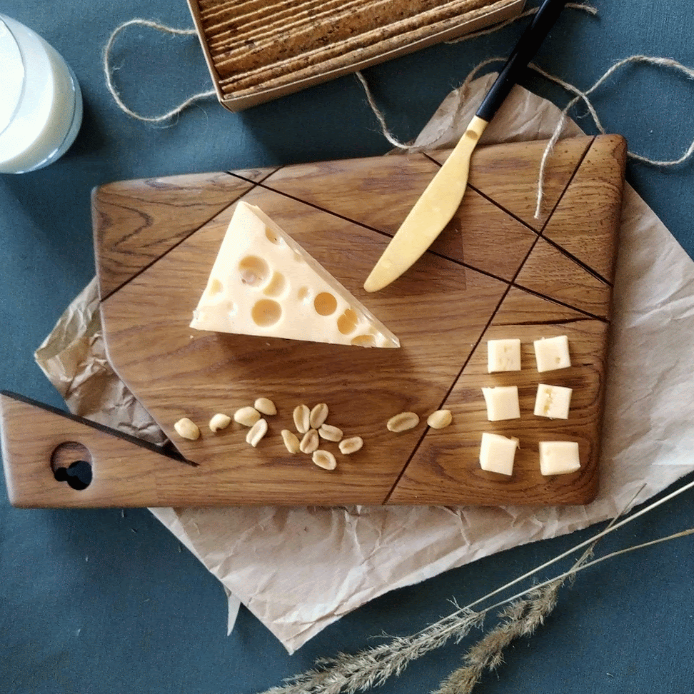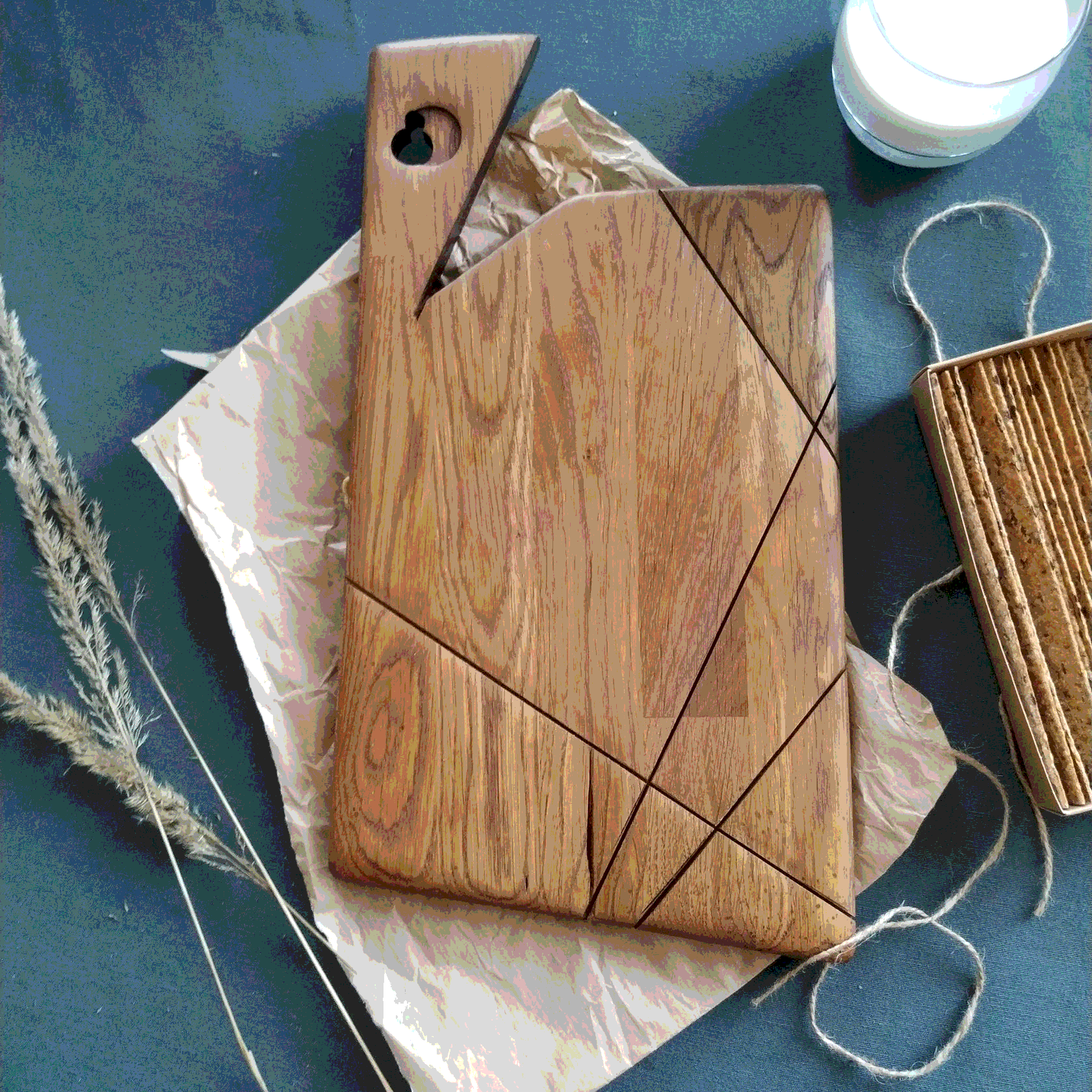 Cutting board made of solid wood to create countryside house mood on the kitchen.