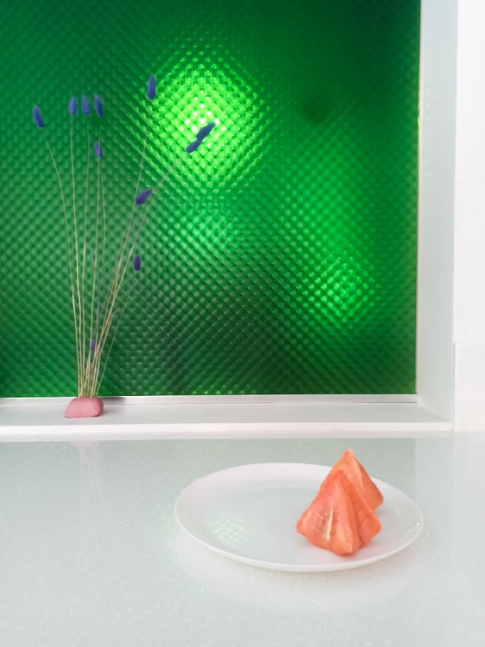 Therefore, we moved the entrance, and in place of the opening we made a stained-glass window through which additional light will enter the hallway, and in the kitchen space this has become an accent detail.