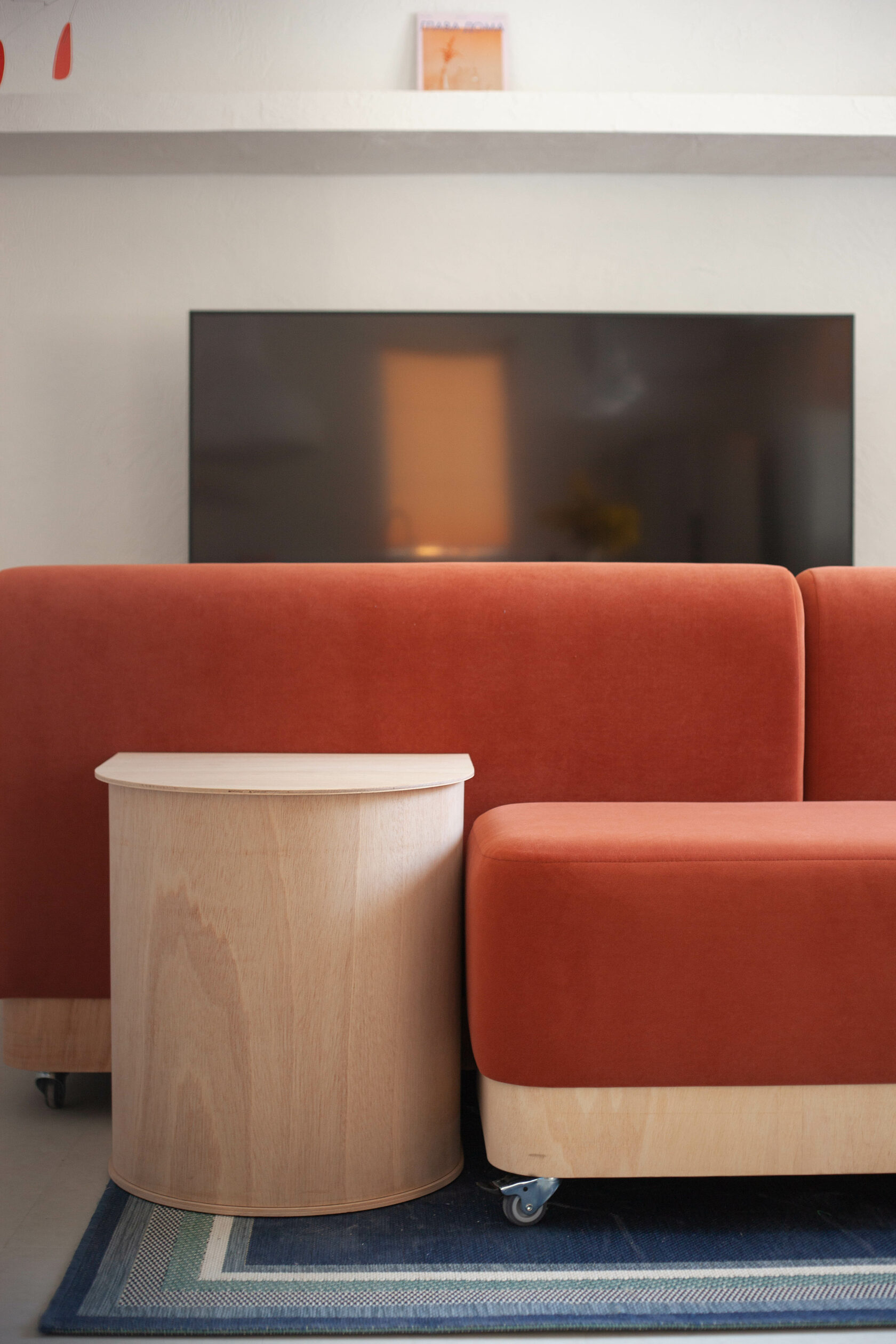 The sofa is designed according to our sketches in such a way as to change the space depending on the situation and the number of people.