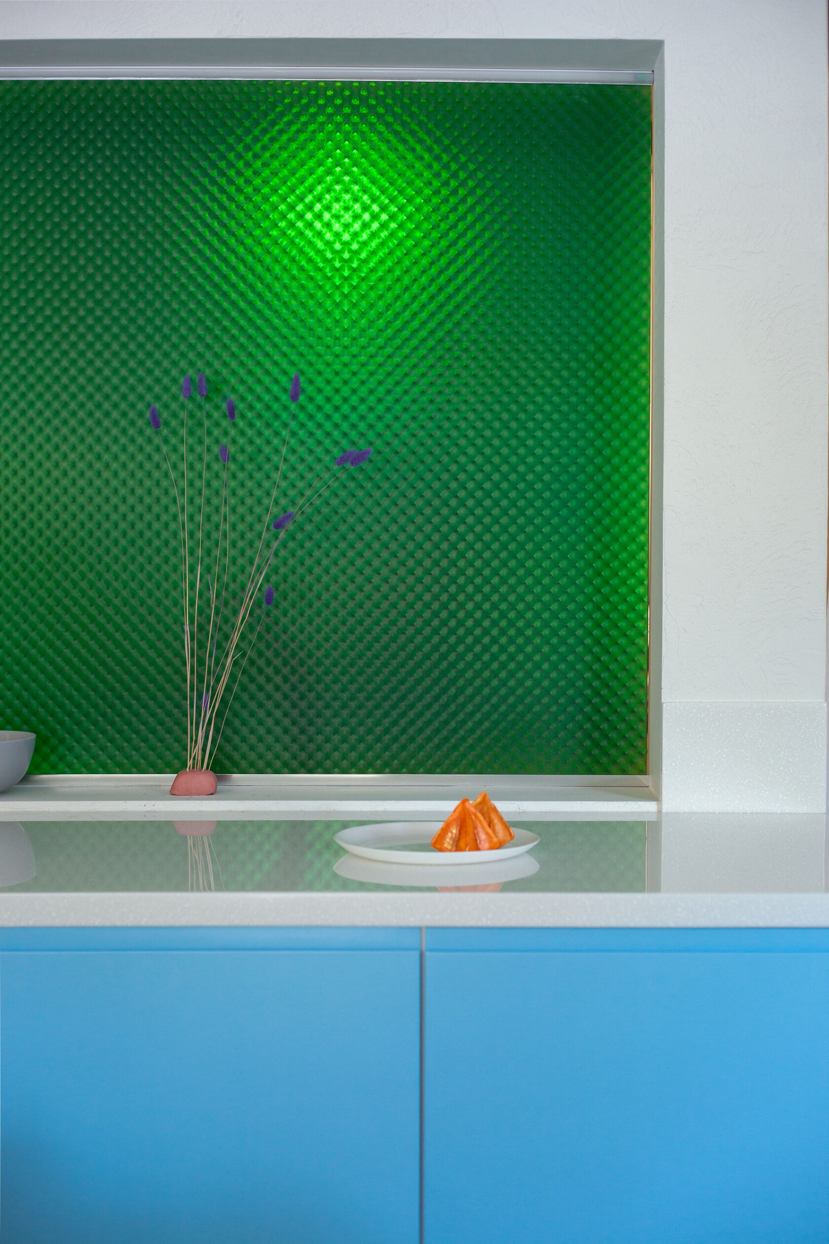 Зеленое стекло было выбрано, как отсылка к буфетному стеклу.