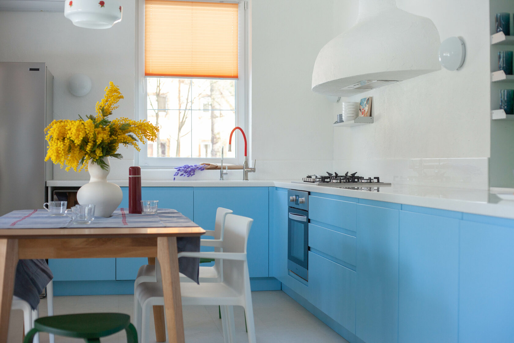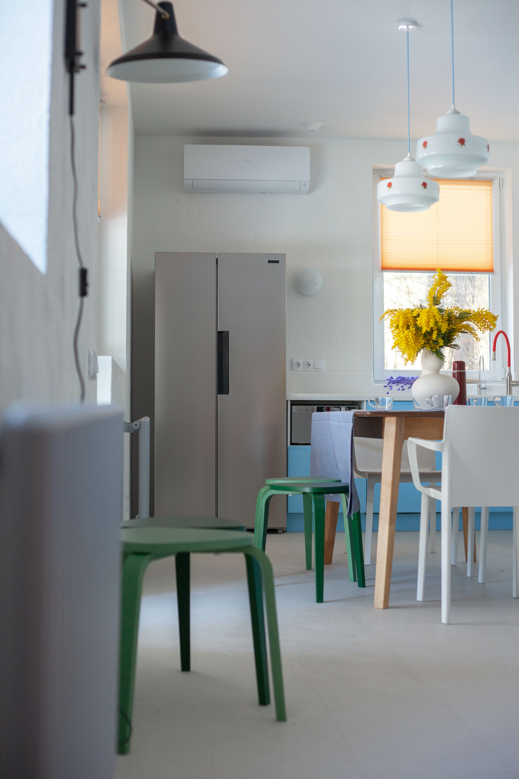 Одним из поводов перенести проем и увеличить зону кухни было желание сделать одноуровневую кухню, что тоже визуально увеличивает пространство.