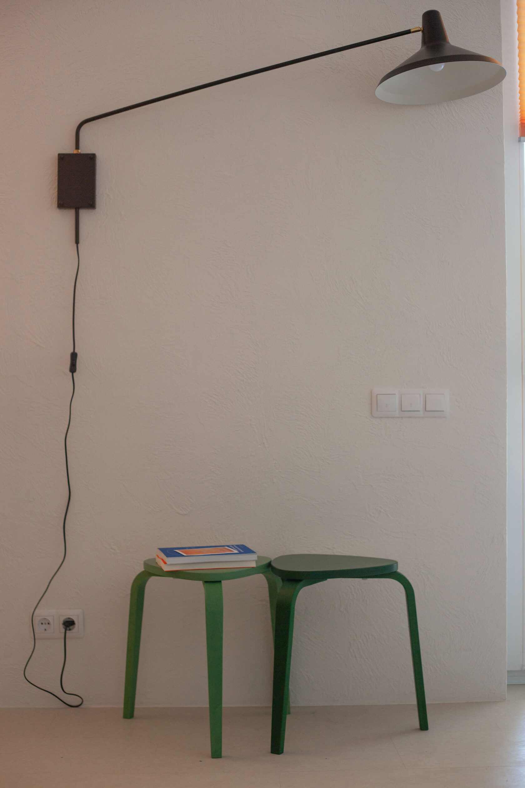 Светильник, сделанный из советского плафона имеет длинный провод, для того,