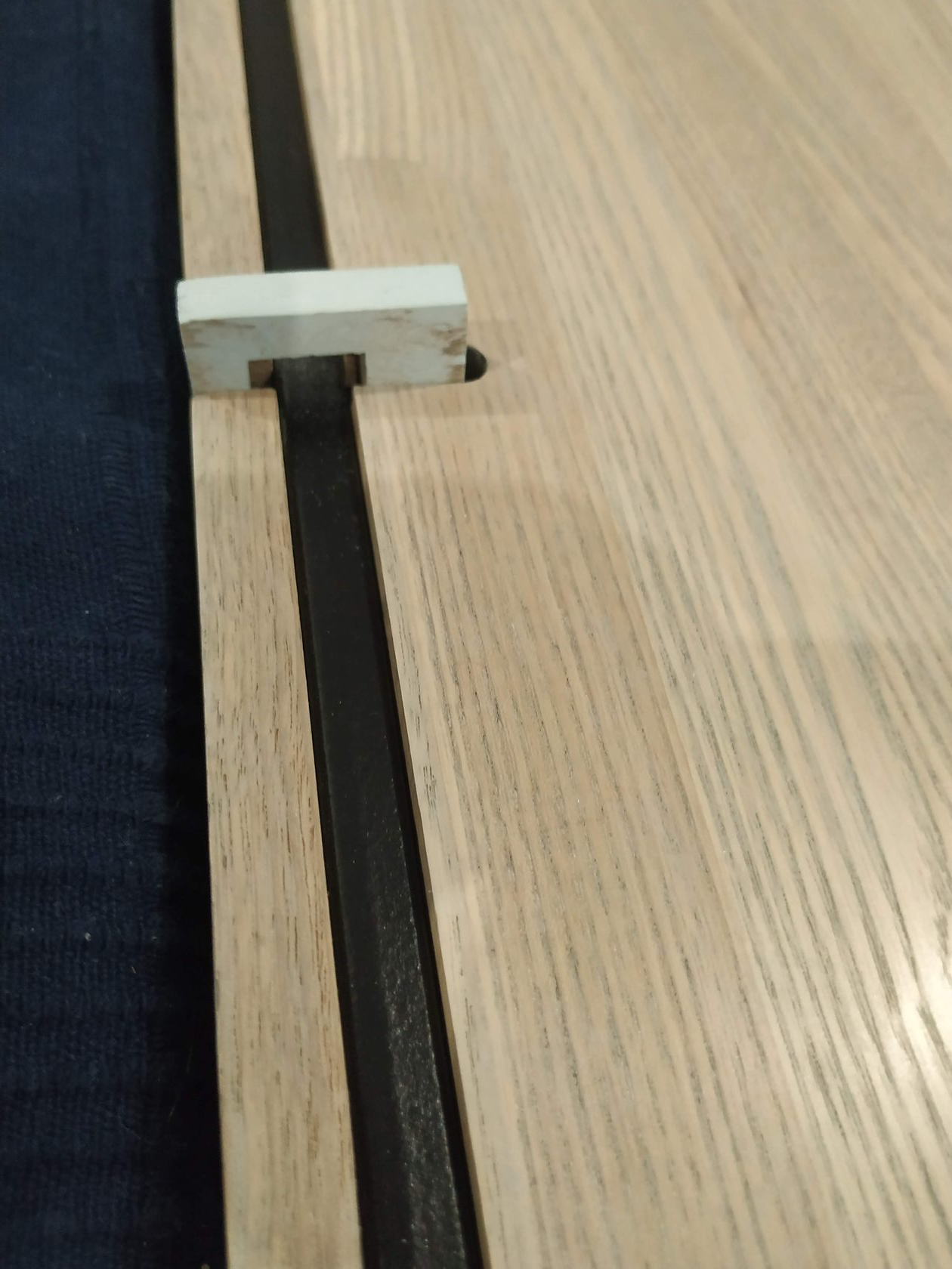 Для коридора мы сделали консоль на металлическом основании со столешницей из массива бука.