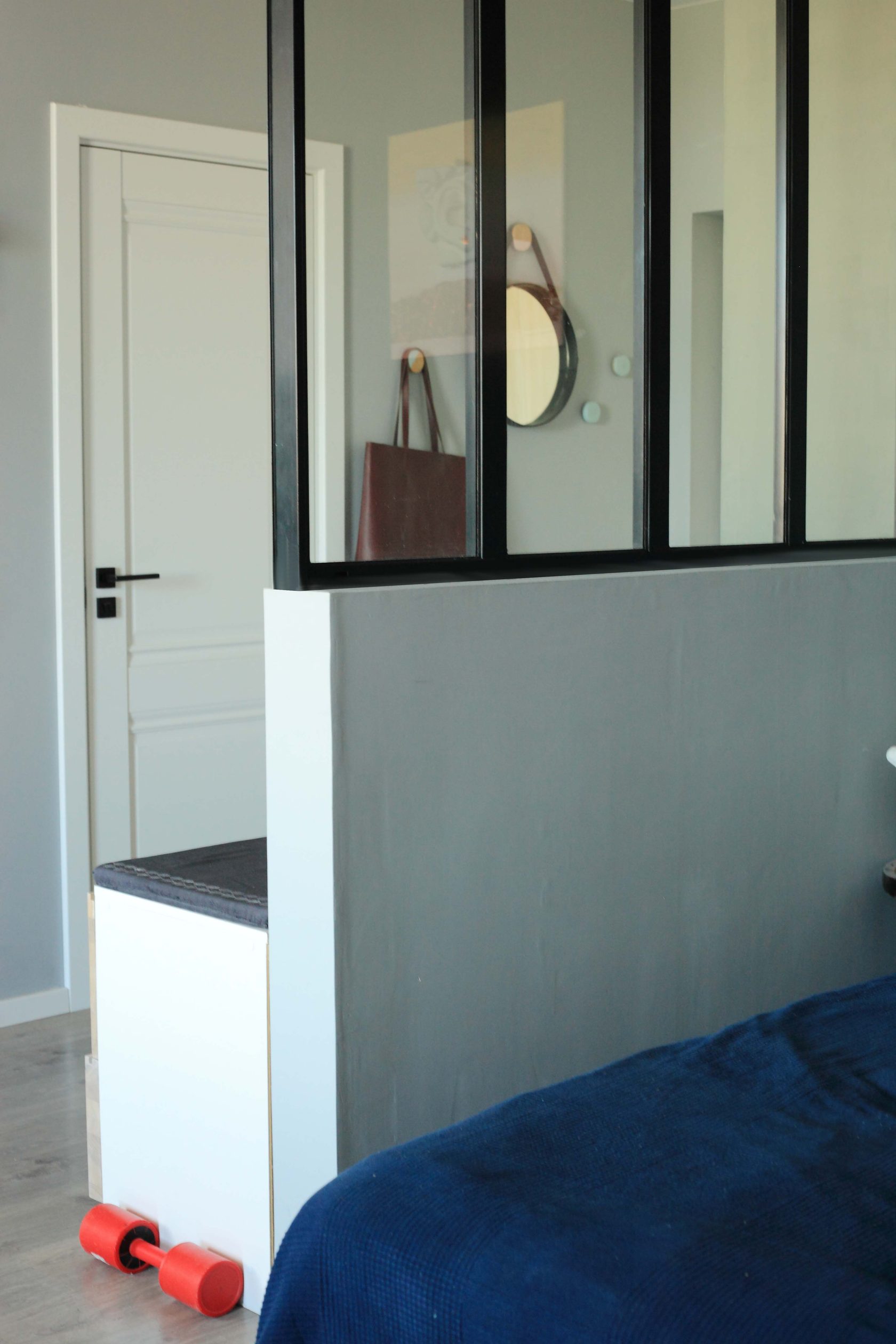 Для того, чтобы пространство было максимально освобождено от вещей и мест для их хранения, чтобы мы всегда могли беспрепятственно делать перестановку мы выделили площадь под гардеробную.