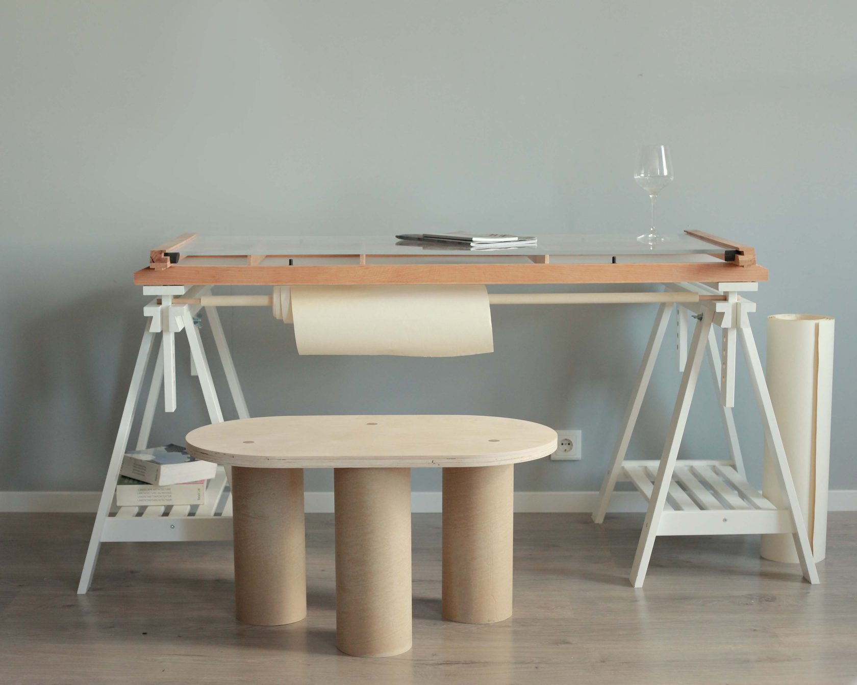 Ножки у стола могут быть любыми, мы выбрали основание из IKEA, чтобы можно было регулировать высоту
