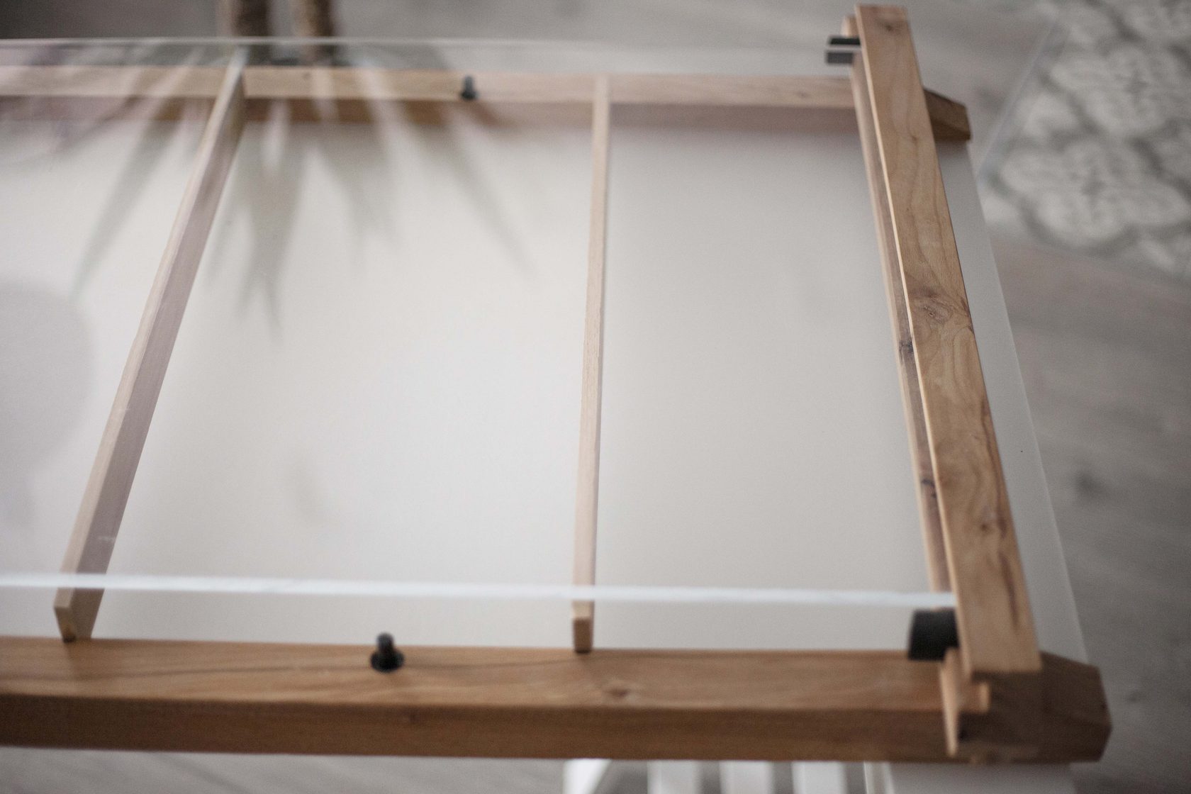 Чтобы под рукой и на виду были важные вещи мы придумали столешницу из оргстекла с внутренним пространством для хранения.